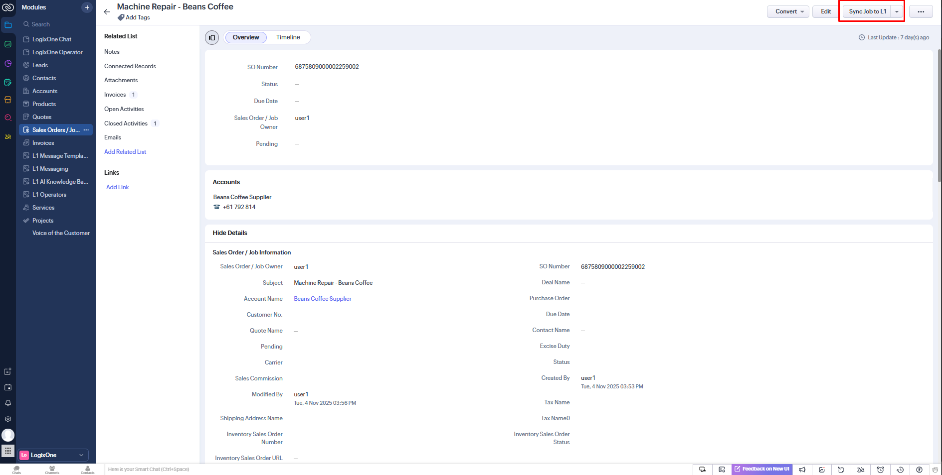 This is a very common occurrence and it occurs because the user has not clicked the 'Sync to L1' button when either creating or editing a job.